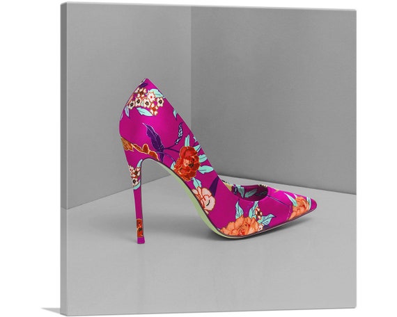 Artcanvas Pink Modern High Heels Shoe Stiletto Flower Pattern Etsy De